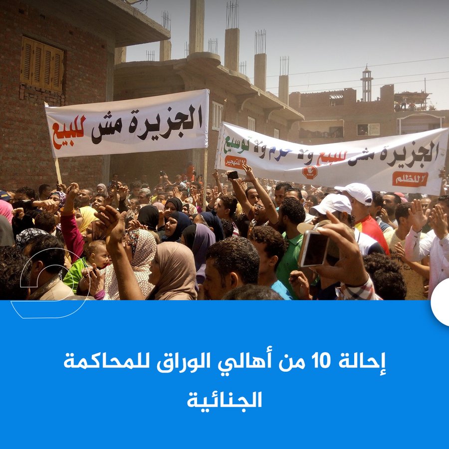 أحالت النيابة العامة ، مساء الثلاثاء الموافق 18 نوفمبر ، 10 أشخاص بينهم محامية من أهالي جزيرة الوراق إلى المحاكمة الجنائية، محبوسين على ذمة القضية، على خلفية ادعاءات بمقاومتهم السلطات والتعدي على قوات أمن وزارة الداخلية في الاشتباكات التي شهدتها الجزيرة في الأونة الأخيرة.